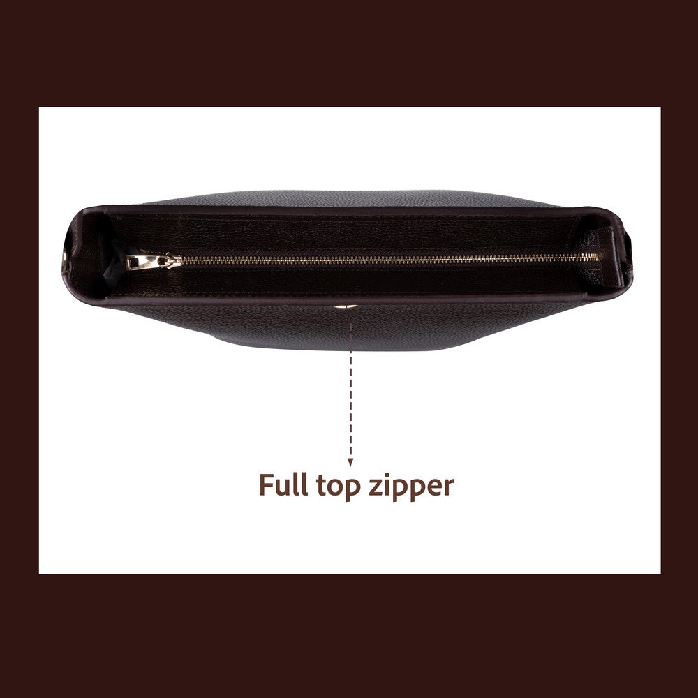 Elevate your everyday style with this shoulder bag crafted from 100% genuine leather. With clean lines and a crisp silhouette, it's the ideal partner for workdays, errands, or adventures. The soft suede-textured interior lining, generous interior, and zippered closure deliver sophistication and functionality.