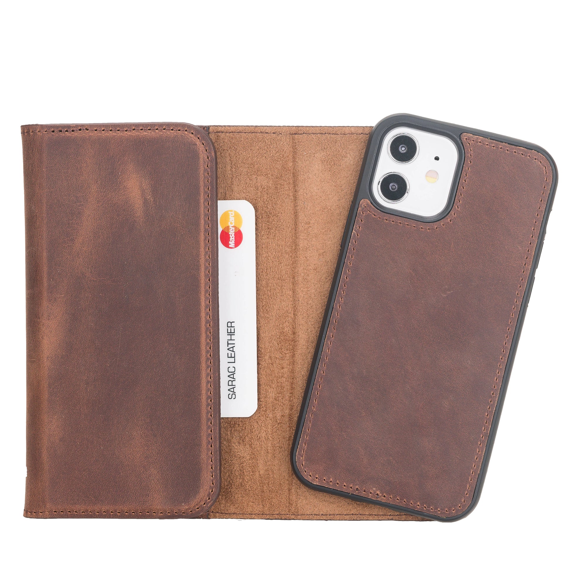 Crafted from high-quality genuine leather, it features a smart magnetic detachable structure that allows you to use the wallet and phone case separately